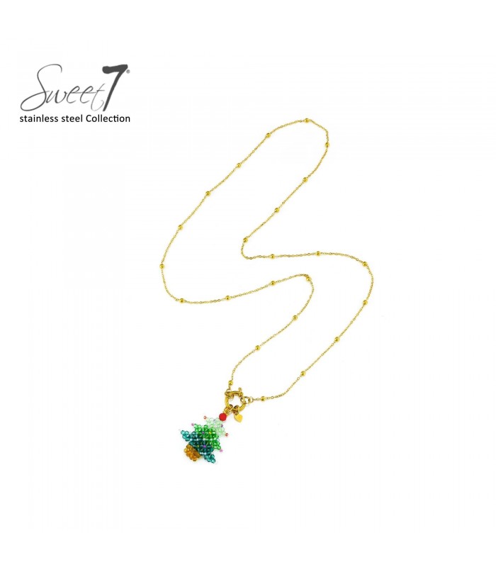 Op zoek naar een subtiele maar feestelijke touch? Deze gouden ketting met kralenhanger in de vorm van een kerstboom brengt instant kerstsfeer. De hanger is opgebouwd uit fonkelende kristalkralen in groen, rood en goud, voor een sprankelend effect bij elk licht. Ketting voor de feestdagen De fijne stainless steel schakelketting met speelse bolletjes geeft dit sieraad een moderne en verfijnde uitstraling. Perfect te combineren met feestkleding of als kleurrijk accent op een eenvoudige outfit. Een must have accessoire voor december.