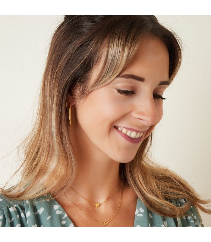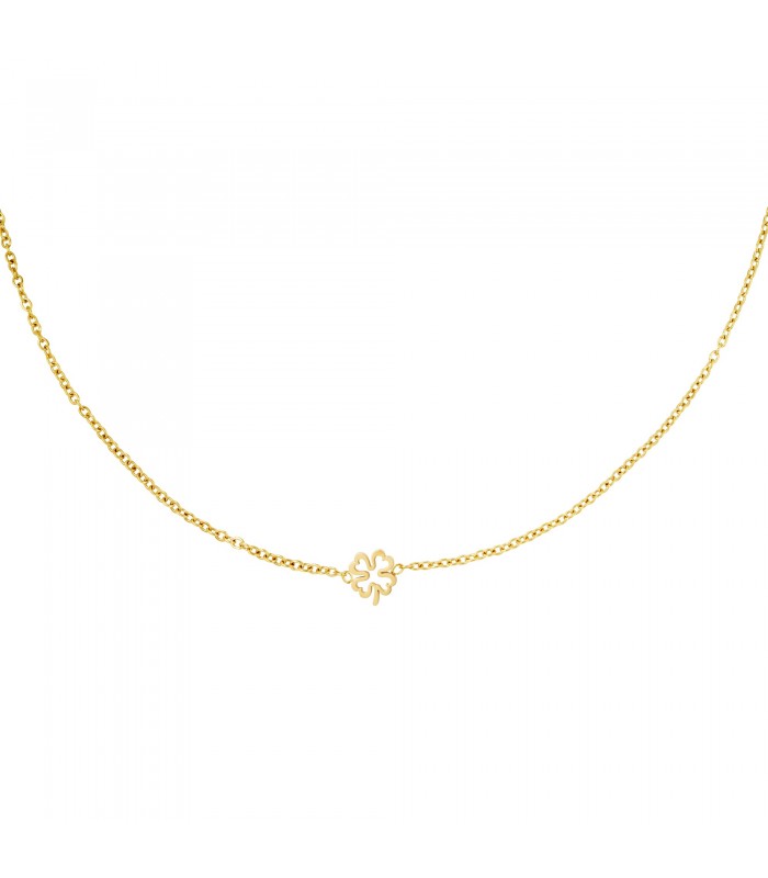 Leuke goudkleurige ketting met een open klaver. Heb je een feestje, een bruiloft of wil je gewoon jezelf verwennen? Yehwang is een modern, hip en eigentijds sieraden merk. Veel glitter, zilver en goud met vaak een uitstekende afwerking zoals gold plating en gemaakt van roestvast staal. Hierdoor krijgen de halskettingen niet alleen een hippe uitstraling, maar zijn ze ook gemaakt van kwalitatief, hoogwaardig materiaal.