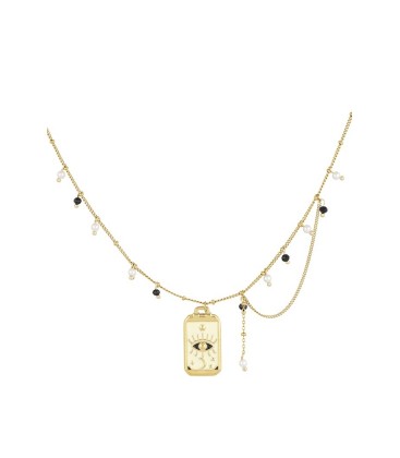 Deze halsketting combineert subtiele kralen met een opvallende oog bedel, wat zorgt voor een elegante en mysterieuze uitstraling. Het goudkleurige ontwerp voegt een vleugje luxe toe aan elke outfit. Wist je dat het oog-symbool vaak wordt gezien als een talisman voor bescherming? Deze ketting is dus niet alleen stijlvol, maar draagt ook een diepere betekenis met zich mee.