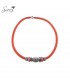 Oranje halsketting met mooie zilverkleurige strass stenen bedels en kralen
