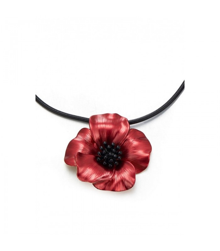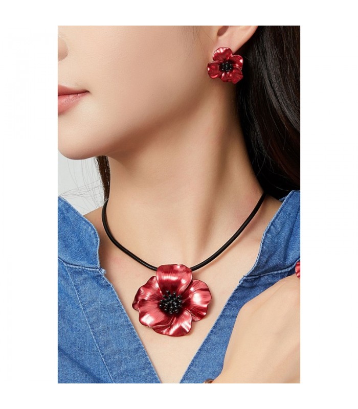 Stijlvolle zwarte halsketting met opvallende rode bloem