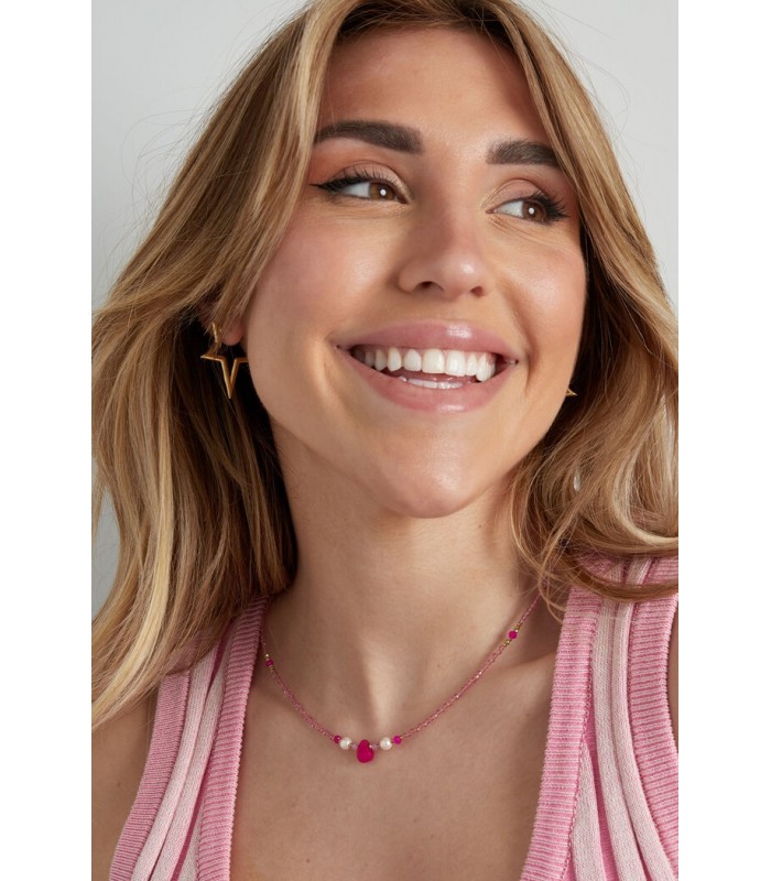 Fuchsia roze dunne halsketting met een druppel vormige hanger. Laat jezelf stralen met deze fuchsia roze dunne halsketting, compleet met een prachtige druppelvormige hanger. Het perfecte accessoire voor elke gelegenheid, deze ketting voegt een vleugje elegantie toe aan elke outfit. Deze opvallende halsketting is een must-have voor elke modebewuste vrouw. De levendige kleur en het unieke ontwerp zorgen ervoor dat je opvalt in de menigte, terwijl de subtiele dunne ketting een verfijnde touch toevoegt aan je look. Upgrade je sieradencollectie vandaag nog met deze prachtige fuchsia roze halsketting. Klik op 'Toevoegen aan winkelwagen' en maak deze eye-catching ketting snel van jou!