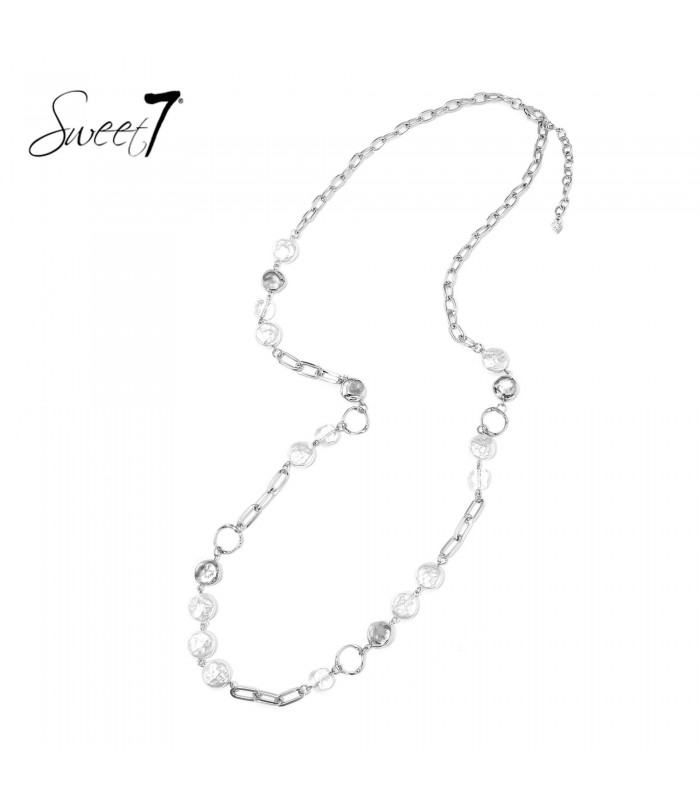 Zilverkleurig en veelzijdig te stijlen. De schakels in verschillende vormen zorgen voor een moderne uitstraling en een speels effect. Draag deze zilverkleurige ketting solo voor een minimalel look, of combineer met korte kettingen voor gelaagde stijl. Een must have voor je sieradencollectie.