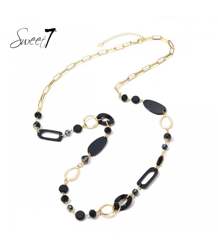 Hoe geef je elke outfit in een keer een stijlvolle upgrade? Deze halsketting combineert diepe zwarte accenten met goudkleurige schakels en open vormen. De asymmetrische indeling en mix van materialen zorgen voor een eigentijdse, luxe uitstraling. Perfect voor zowel overdag als s avonds. Halsketting met grafische details Ovale en ronde vormen wisselen elkaar af voor een speels, modern effect. Deze ketting past perfect bij zoekopdrachten als zwarte statement ketting en goudkleurige halsketting dames. Combineer met een blazer of basic top voor maximale impact.